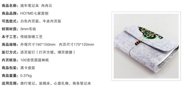 原创b6中国民族风羊毛毡绣花创意活页本子商务笔记本记事本